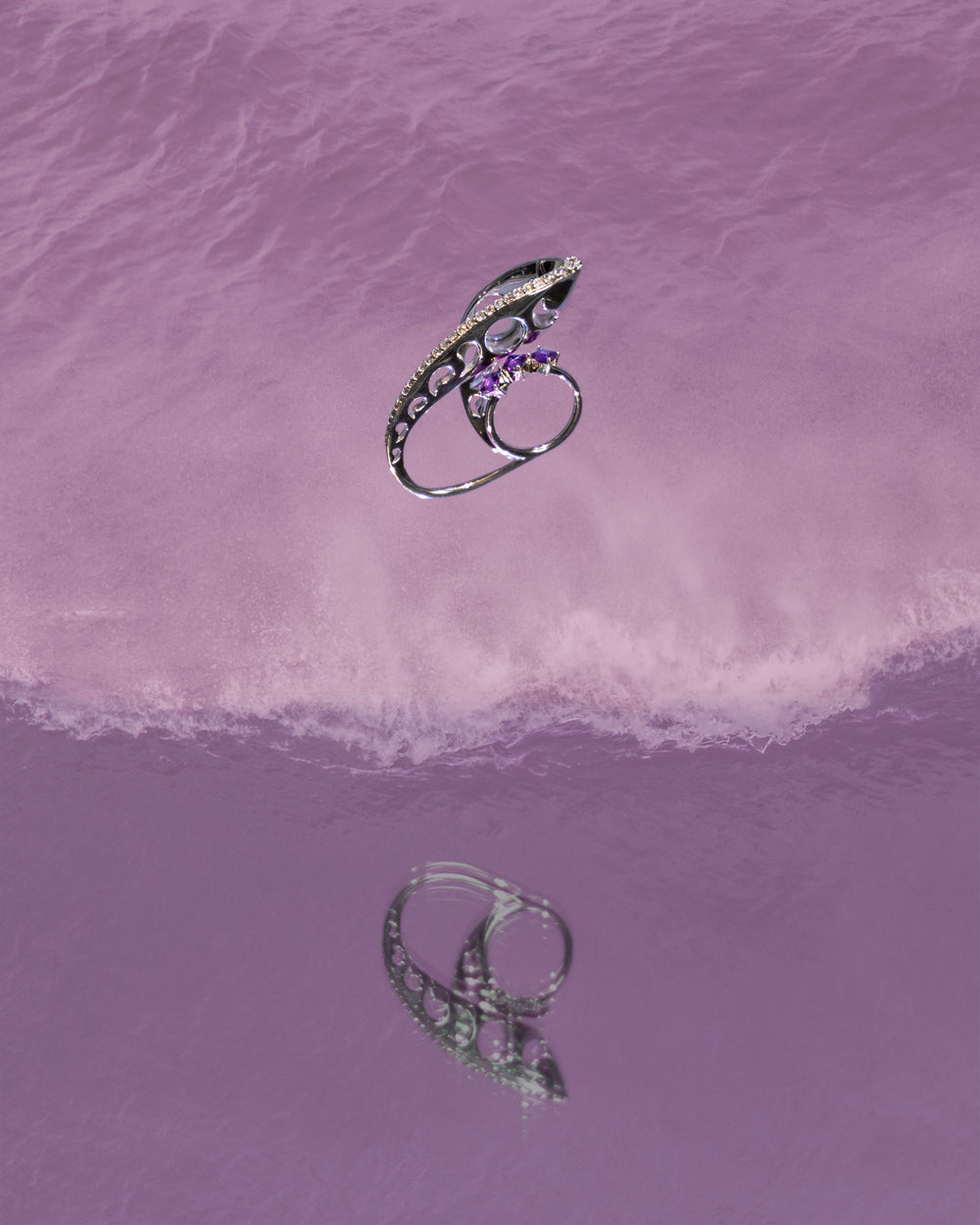 Pavé diamonds dance, amethysts amaze, silver & smoke snicker.